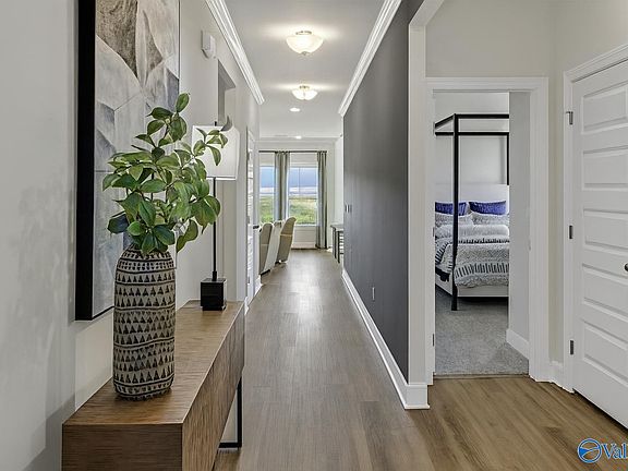 Bright sophisticated atmosphereSerene primary suiteGourmet kitchenCrown moldingStainless steel appliancesLed lightingUpscale finishes