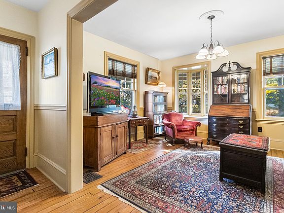 Welcome to this beautiful 5 bedroom, 1/2 bath Twin Colonial that exudes charm and character in every nook and cranny. A wonderful wrap around porch welcomes up and through the front door. Original hardwood floors greet you and stretch through almost the entire main floor. The rooms flow nicely from the living room at the front of the home to the dining room and into the large kitchen. Large windows drench the home in natural light, while the chair rail design adds character and connects the spaces. The large kitchen combines vintage vibes and modern amenities, creating a space you'll enjoy spending time in. Kitchen has been updated to include Granite counters and tons of cabinetry for storage, but kept the antique gas stove still in great working order. Convenient first floor laundry, a half bath and access to the rear deck complete this floor. The second floor has 3 spacious bedrooms, all with an abundance of natural light, hardwood floors and lighted ceiling fans. A full hall bath finishes off this floor. The third floor has 2 more spacious bedrooms, each with custom built ins and closets. A smaller bonus room sits between these rooms and could be used as an office, large walk in closet, playroom, etc. The basement offers tons of additional storage space. A large fenced yard boasts mature trees, flowering plants and great green space. Located in the highly sought after Wallingford Swarthmore school district. Minutes to tons of shops and restaurants in Swarthmore, Media and surrounding towns. Less than 15 minutes to the Philadelphia International airport, approx 30 minutes to the cities of Philadelphia and Wilmington, DE. Easy access to I-95 and Rt 476, close proximity to multiple SEPTA stations.