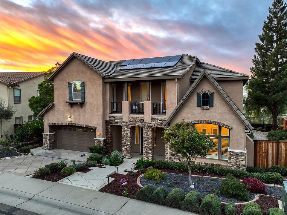 Breathtaking Whitney Oaks Retreat with Million-Dollar views await you from this stunning former model home in the gated Whitney Oaks community. OWNED SOLAR, a 2 year new HVAC, new flooring & lighting add comfort & value throughout.Step inside and be greeted by a grand circular staircase framing sweeping views of the Sutter Buttes & twinkling city lights. To the right, a formal living room warmed by a cozy fireplace invites conversation, while the elegant dining room is perfect for gathering loved ones.The open-concept kitchen, breakfast nook, & family room, complete w/ another fireplace, all showcase the home's incredible vistas. The chef's kitchen features a massive granite island w/ sink, GE Monogram appliances, and a butler's pantry for effortless entertaining.Downstairs offers an ensuite bedroom, ideal for guests. There's space for everyone, including a home office, game or movie room. A luxurious primary suite w/a fireplace, built-in closet system, jetted tub, access to a private covered balcony,the perfect spot to relax, take in the sunset.Enjoy summer evenings in your backyard oasis, complete w/ a covered patio, lush lawn, & built-in outdoor grill.Experience the best of Whitney Oaks living, breathtaking views,elegant design, and modern upgrades