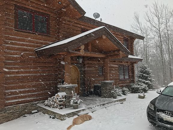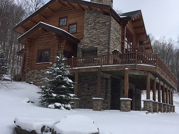 MOUNTAINTOP MONTANA LOG HOME - Gorgeous LODGE-STYLE property with MASSIVE MOUNTAIN VIEWS in a TOTALLY PRIVATE SETTING. You won't want to leave home.... SOARING GREAT ROOM with FLOOR TO CEILING STONE FIREPLACE, WALL OF WINDOWS and OPEN-CONCEPT FLOOR PLAN that includes GOURMET KITCHEN and FULL BAR. INDOOR/OUTDOOR LIVING with LARGE DECK WITH OUTDOOR FIREPLACE, and lower STONE PATIO with FIRE-PIT. Room for all with four bedrooms and 4.5 bath. FULL FINISHED WALK-OUT BASEMENT/MEDIA ROOM with additional cozy fireplace. Close to all area attractions including hiking, skiing, kayaking, farm markets and restaurants. Convenient location near the villages of Margaretville and Andes. 2.5 hours from the GWB. YOUR CATSKILL DREAM AWAITS!