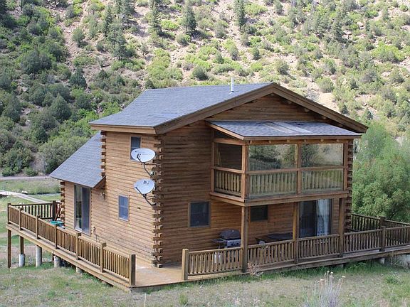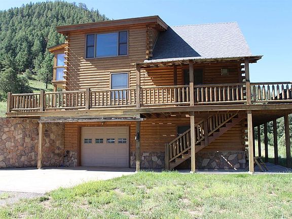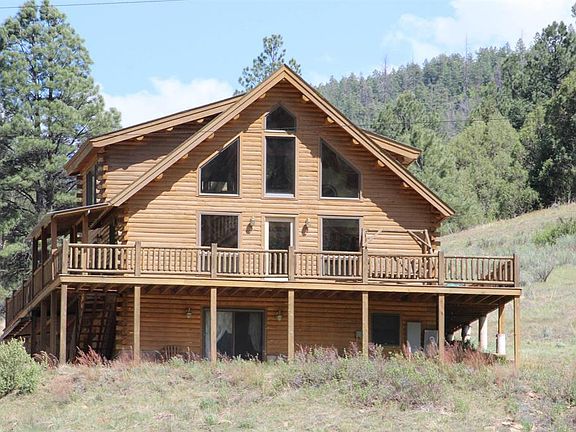 The Navajo River runs through this 120 acre parcel with +/- 2,500 feet on each bank of this trophy Navajo River fishery. This beautiful full D-Log home is perched above the Navajo River with river valley and mountian views in every direction. The wrap around deck extends this beautiful setting into the outdoors where the River can be seen and heard as you enjoy the surrounding vistas and valleys. The property borders BLM lands to the south and east and creates the ultimate setting for the outdoor enthusiast in the middle of a hunting and fishing migration paradise. The home is appointed with granite counters throughout, stainless appliances, custom built propane fireplace, new walk-in shower in Master bath, jetta tub in Guest bath and southern facing growing atrium off of the Master bedroom.Finished Game Room/Basement could be converted to a 3rd Bedroom with it's own 3/4 bathroom and access. This beautiful River setting is ready for your outdoor recreational enjoyment. Call for a private viewing today.