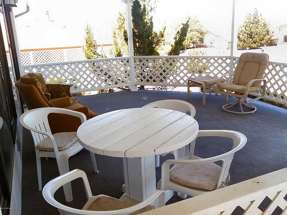 This house has great curb appeal. Kept in very good condition. Master bath has new granite topped dual vanity. Kitchen has brand new stainless steel range and dishwasher. Kitchen undersink cabinets are brand new. Office with built in desk and cabinets. Relax on the large covered porch with views of Willow Lake, the Dells, and Mingus Mtn. Attached and insulated 8x10 workshop or storage. Large 2 car carport. Very close to shopping, banks, etc, yet quiet and peaceful. Spotless, and turnkey ready. Over $12K in improvements in the last 2 years.