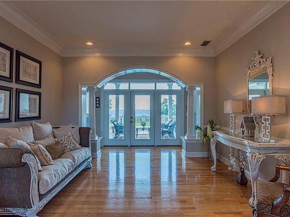 This one of a kind waterfront masterpiece blends the best of architecture, location, style and natural beauty. Upon entering the grand foyer, pause to enjoy the marble flooring, soaring ceilings, wrought iron railings and abundant visual features. Situated on the widest part of Dog River and facing southeast, this home was custom designed so that every room takes full advantage of the gorgeous sunrises, abundant wildlife and panoramic waterfront views of Dog River, the Dog River Bridge, Mobile Bay and the Eastern Shore beyond. This is the best of all worlds, as this over 1.7 acre location is well protected, yet you can literally watch the ships sailing in and out of Mobile Bay. An entertainer's dream, this home has an open floor plan with abundant natural lighting, beautiful hardwood floors, a large open kitchen with a raised bar island, thick granite counter tops, gas range, stainless double (convection) ovens, extra vegetable sink, and beautiful custom cabinetry. The formal dining room with buffet nook, high ceilings, detailed trim work and views in all directions. The outdoor spaces include a landscaped yard, sparkling swimming pool, balconies, decks, porches and covered verandas. With almost 7800' under roof there is always plenty of room for even the largest gathering of friends! This home displays many custom characteristics including a peninsula fireplace, arched openings, reading loft, viewing nooks and wide hallways. These attributes are accentuated with high multi-trayed ceilings, architectural columns, 8' solid doors, transom windows, custom trim and crown molding. The 4 bedrooms, 3 full baths and 2 half-baths are beautifully appointed with garden tubs, marble surrounds and quality fixtures. The elegant master suite has unobstructed water views, large walk-in closet and a luxurious master bath with spa-style lighting, twin vanities, Jacuzzi tub, shower and separate toilet. The downstairs has a large entertainment room that can be used for theatre/game/pool room, etc. and a very large half bath with separate storage closets. Downstairs there is a bonus/rec room and a private office. There are 2 separate, oversized garages (+/- 45' deep) with shop area. The home is located at the end of prestigious Dog River Road in a clean and quiet neighborhood that is known as a low-traffic favorite for walkers, joggers and cyclists. While it feels remote, this is centrally convenient within 5 minutes of Interstate 10 (via Rangeline Road), 10 minutes to Airport Blvd and 15 minutes to downtown Mobile. Experiencing the finest waterfront living our area has to offer. Come visit and let yourself fall in love with this gorgeous home, its peaceful surroundings and incredible views. Listing company makes no representation as to accuracy of square footage.