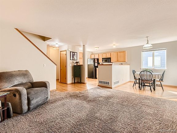 Step inside to a warm and inviting kitchen adorned with beautiful hardwood floors and a cozy family room with a gas stove. Here, you'll create cherished memories, spending countless hours together watching your favorite shows on cold Colorado nights. The open layout seamlessly connects the dining area and kitchen, providing ample space for you and your loved ones to cook and enjoy meals together.