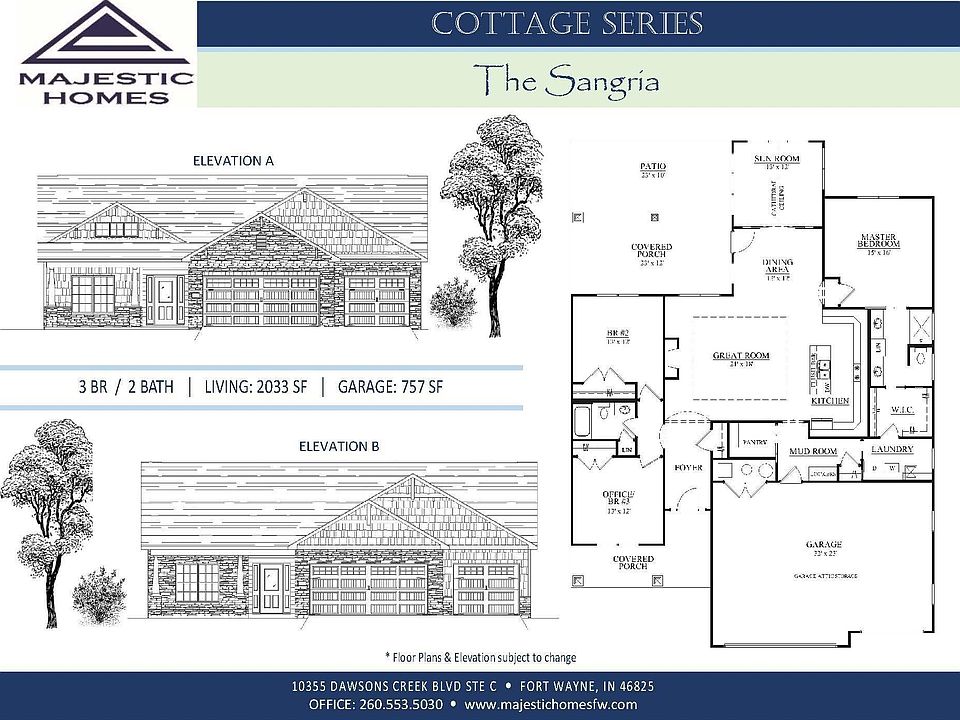 Located in the area's newest subdivision Raccoon Run. Designed with functionality and high end upgrades, the "Sangria Cottage Series" features over 2,000 sq ft of finished living space. Welcoming you at the front door and into the open foyer, you'll meet a private den at the front and leads you back to the open concept living space. Here you'll find the spacious living room with vaulted ceilings, nearby dining and exceptional custom kitchen. Offering quartz counter tops, breakfast bar, walk in pantry, all appliances, and ample cabinet space. Enjoy relaxing in the sun room or unwind within the spacious master bedroom with private en-suite. Majestic Homes is known for their superior construction with open-web truss system, HE Low-E Simonton windows, HE 50gal water heater, HE furnace & a/c, double insulation on exterior walls, and a 10 year Quality Builders Home Warranty.