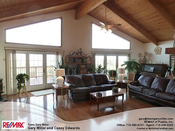 Colorado Dreaming? This is it! Perched on top of a hill with panoramic vistas of Pikes Peak, Cheyenne Mountain, the Arkansas River valley and the twinkling light of Pueblo West, this home was built to enjoy the beauty of Southern Colorado. The vast wrap-around deck and expansive windows provide the harmony of nature to be enjoyed inside and outside this custom-built home. Upon entering the home, the soaring ceilings highlighted by the massive 14 foot tall moss-rock fireplace welcomes you home. The full walk-out basement and huge patio provide room for entertaining friends and relations. This one must be seen to be appreciated.