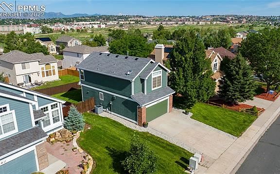 NEWLY UPDATED 2-STORY HOME AT A GREAT LOCATION! This move-in ready open design floor plan will welcome you with new durable Pergo laminate wood floors through-out the main level, new carpet up stairs, in the basement, and on both stair cases. New interior paint on the main and upper level. The kitchen has new granite tops with bar, complete with stainless undermount sink, and stainless faucet. Also a deep walk-in pantry. All new landscaping in the front and back yards with new sod and rock. Brand new garage door. New roof in 2020 with GAF impact-resistance shingles (might lower your home owner's insurance). New A/C and Furnace in 2017. Open main level with vaulted ceilings, brick fireplace, and living room which opens into the dining area and kitchen. The basement is set up for a home theater with 5.1 surround wiring, and wiring that runs up to 2 additional wall speakers on each side of the main level fireplace. Movie theater indirect ceiling lighting will enhance your movie viewing experience. Enjoy Pikes Peak views from both upper back bedrooms! The back yard is fully fenced and ready for gardening with the elevated garden boxes. Walking distance to Springs Ranch Park, Remington Park and elementary school. Also close proximity to Sand Creek High School. Minutes away from everything the Powers corridor has to offer. Restaurants, shopping, movie theater, and much more.