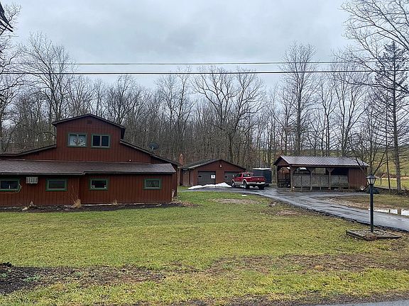 The exterior of the property includes 6.8 acres, 26x26 2 car garage, car port, small barn, additional outbuilding that could be used for multiple things. Majority of the property is wooded with a small stream that runs through with a nice swimming hole. The interior features 3 bedrooms, 2.5 bathrooms, large kitchen/dining room, family room, pantry, small office, recreational room and a bonus room. There have been many updates done but the property is still in need of work. House is being sold as is.