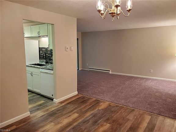 Stylish and incredibly updated throughout! New white kitchen cabinets with granite counters/sink, back splash, flooring and appliances! Full bath has been totally updated as well. Spacious dining/living room combination with sliders to 3 season sun room to enjoy the seasons with awesome view of Adell Durbin Park! New flooring (all updates done this year). New electric panel.Garage space #161 and storage unit are included.