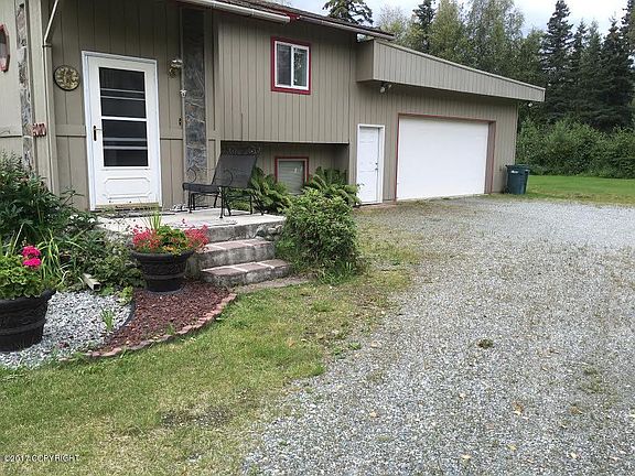 Very cute and well maintained home just minutes from downtown Wasilla. Beautiful landscaping in the front yard, a small fire pit out back near a fountain to kick back and relax, and plenty of room to add a shop or put in a back yard. Great area for commuters as well.The interior of this home features 3 bed, 2 bathrooms, with well used space. Open concept kitchen/living area with vaulted ceiling The tall windows across the front of the house lets in lots of natural light and allows you to keep an eye on the activities out front! The downstairs living area has a Wood Fireplace if you would prefer to heat that way as well. Large two car garage with Engine Hoist that spans across the entire garage. If you're looking to add some more value/space to this home, the garage was constructed to have a second story built on top of it. There is a lot to love about this home. Schedule a showing today!