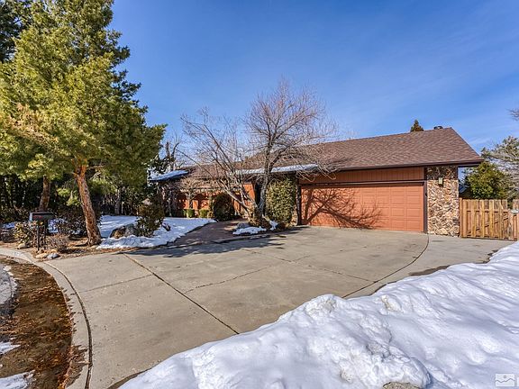 This spacious home is located in highly desired SW Reno and is nestled on a quiet cul-de-sac. Mature landscaping and a paver walkway warmly invite you home. The main level of the home boasts a cozy fireplace, perfect for relaxing on cool evenings, a large dining room, and a deck that overlooks the private, park-like backyard with filtered city views. The spacious kitchen features granite countertops.The master ensuite is also located on the main level, complete with dual vanities and a large walk-in, closet. An additional bedroom and bathroom complete the main floor. Downstairs, the finished walk-out basement provides plenty of additional living space including two bedrooms, an office, a great room, a bathroom, and a convenient kitchenette, making it an ideal space for guests or as a separate living area. Situated on almost 1/2 acre, this property offers plenty of room for outside entertaining and is a conveniently close walk to the Steamboat Ditch Trail!