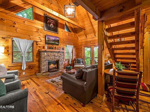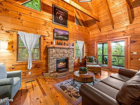 INCOME PRODUCING 2BR/2.5BA CABIN WITH MILLION $$ MOUNTAIN VIEWS FOR MILES! This turnkey cabin with modern decor and finishes has all you need to maximize your ROI! Currently setup to sleep 6 and grossed $78k for 2021 and $67k for 2022! Interior features include soaring vaulted all wood ceilings, hard flooring, and tongue and groove walls. Open floorplan with fully equipped kitchen with stainless appliances, a snack bar for additional seating, and eat in dining area. Nice living room with stone accented fireplace, and a half bath on the main level. The second level you have your own private Master Suite with jet tub with a fixed glass window to take in the mountain views. Lower level has the second bedroom with private deck access, full bathroom, laundry room, and a spacious gameroom with pool table. Multiple levels of covered decking to enjoy the views and sunsets or take a dip in the bubbling hot tub. Also, enjoy swinging or rocking on one of the decks. Convenient location only 5 miles to the parkway in Pigeon Forge, and only a short drive to Gatlinburg. Must see!