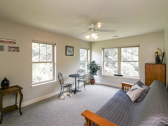 Beautifully refurbished custom home; private wooded acreage. Features gracious upgrades inside and out. Cement board siding and stone create charming curb appeal. The well designed interior includes: kitchen with granite, new stainless steel appliances, walk in pantry and gleaming solid walnut floors; a lovely great room with vaulted ceilings and fireplace; private screened porch with ceramic tile; bathrooms featuring antique vanities; walk out; Jeld wen windows; garden room; zoned HVAC and central vac.