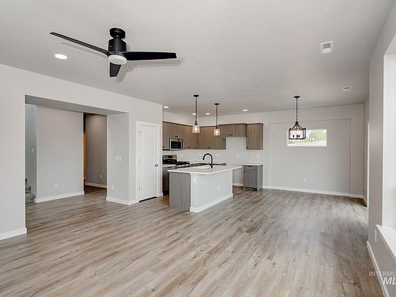 Be welcome in the Mica 2205! Shutters and full landscaping/fencing are included with the home. This spacious home contains multiple living areas that are ready at a moment's notice to host gatherings, channel productivity, or promote relaxation. The entryway ushers you into the heart of the home, where the open living areas flow seamlessly together under 9' ceilings. The spacious kitchen boasts upgraded finishes, including solid surface countertops, stainless steel appliances, and a gas range. One bedroom downstairs is perfect for a home office or guest room. The other three bedrooms await upstairs, including the primary suite with en suite bath and a stunning walk-in closet. An upper level playroom is centrally located off the bedrooms and offers the flexibility to be transformed into whatever space you need it to be. Photos are actual.