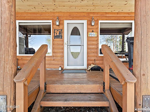 Live your Alaskan Dream while enjoying 384' of waterfront & views of Denali from your covered front porch in this custom built log home on West lake! Landscaped, fenced & in ground sprinklers. Dry cabin w/ outhouse & super sized detached garage/shop w/ potential apt above. Inside: open concept, separate laundry room, arctic entry + pantry, granite counters w/ built in garden window in kitchenVaulted ceilings oversized main bedroom ensuite. Updated room darkening up/down shades on all of the windows. Extras include: New Dock - 2019 New Roof w/ 100 year shingles - 2020 New well pump - 2021 New on-demand hot H2O - 2021 Smart Thermostat - 2022 H2O filtration w/ Iron Eliminator - Iron Free water (no need for H2O softener) Natural Gas Heat High-speed internet You can almost stand up in the crawl space! The cement pad near dock was wired for hot-tub (easy to redo) Sheds = 1 Wood Shed plus 3 extra sheds attached to garage/shop Separate access to shop w/ roll up door connecting to garage Gas meter for garage/shop is separate from the house Telephone & electric connected to garage/shop Airplane Lake The home is equipped w/ urethane insulation in walls & ceiling not only for extra insulation but also to provide strength in the structure. This home didn't even wiggle during the 2018 earthquake! Bonus: This is a fire wise community where the neighbors work together to ensure fire safety for all, with NO HOA!