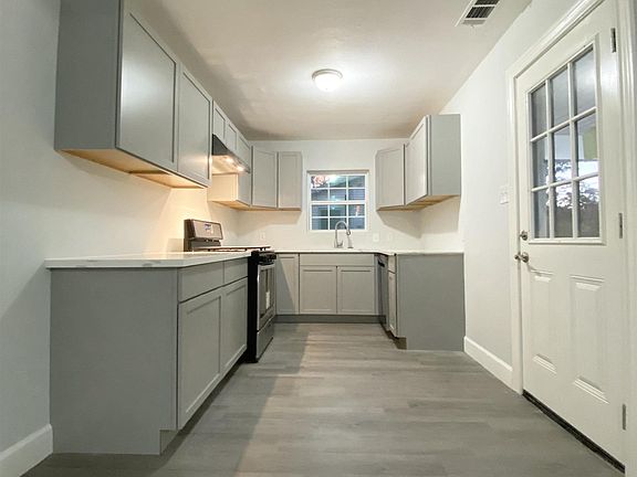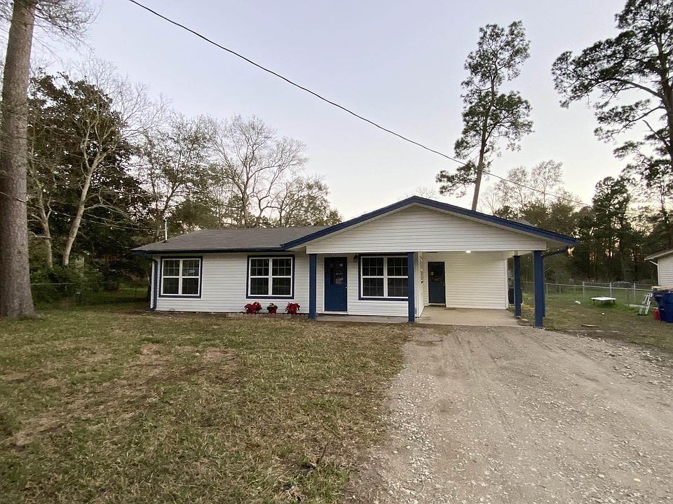 Such a cute remodeled home OUT of city limits!! 3 beds, 2 full baths + bonus room/sunroom, neutral gray pallet, BRAND NEW HVAC unit, new roof, new flooring, new toilets, sinks, tub, shower, doors, cabinets, appliances, etc. Under roof carport, covered building in back for plants or storage, fenced yard, well/septic so utilties are very affordable. Hurry and call your favorite agent today!