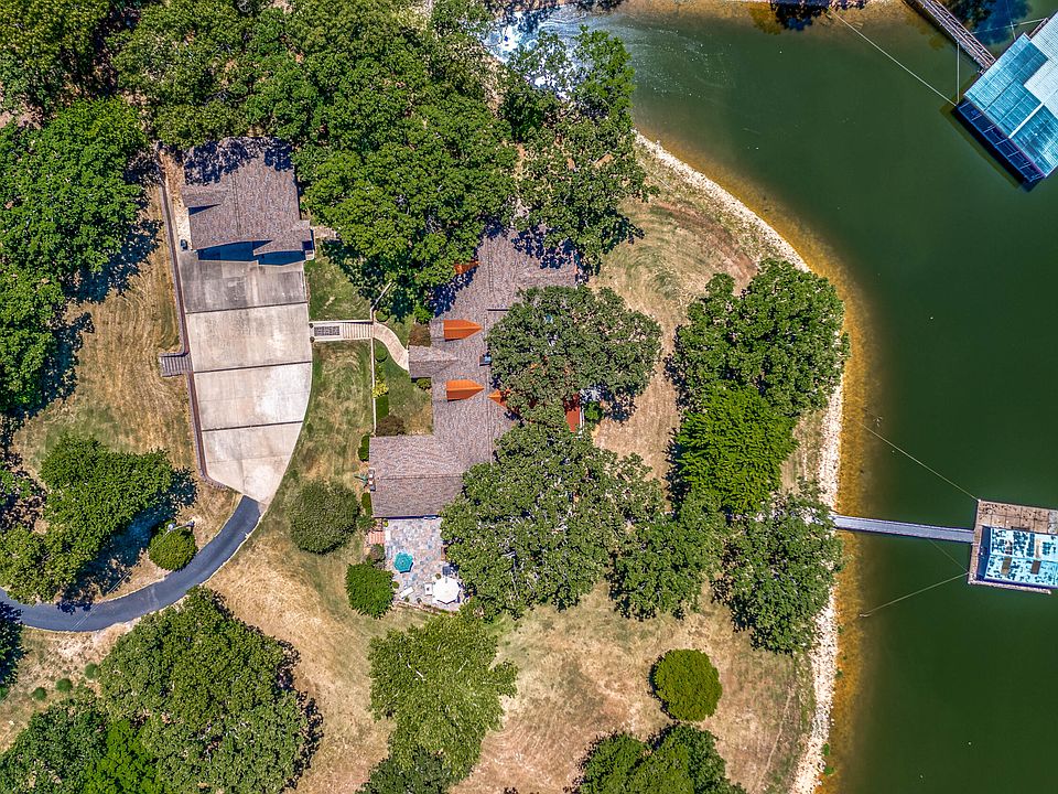 Rare opportunity in the Grove area of Grand Lake, Waterfront home on 7 acres in the Honey Creek area. Elegant lake home features almost 600' of Grand lake shoreline, gentle slope to the lakefront, Detached 4+ car garage with added storage above, spacious patio just outside the family room, Great room features open living design, vaulted wood ceilings, wall of windows on lakeside and beautiful wood flooring, natural rock fireplace, fabulous kitchen, eating bar, granite countertops, and dining area. The primary suite is an unbelievable, spacious 2-level suite, main level features a bedroom with lake views, screened porch, a private bath, a soaking tub, ceramic tile shower, and dbl sink vanity. The lower level features a private office, workout room, full bath, and laundry room.The main level of this beautiful home also features a large family room with a natural rock Fireplace, splendid bar, cove ceiling, and access to the patio with Grand lake views. You will also find the 3 guest bedrooms on the main level. The second Guest Bedroom features an en-suite that could serve as a second primary bedroom with a double sink vanity, walk-in ceramic tile shower, and walk-in closet. Guest Bedroom #3 also enjoys lake views and a large walk-in closet. Guest bedroom 4 is also on the main level. This home offers so many special features you must see to appreciate.