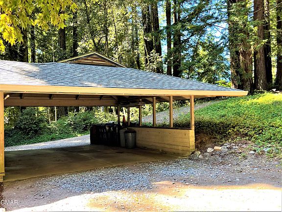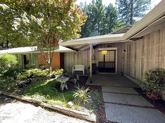 Two homes on 5 private, sunbelt acres. Tranquil homestead nestled in a lush redwood forest clearing. Ranch style home with Japanese design influences. Main level: living room, formal dining, kitchen with dining area, primary bed, bath and just over 1,100 sf of south facing deck that flows easily off the living areas. Lower level: den, 3 bedrooms, bath, and laundry. Listen to the music of your own year-round waterfall on Mitchell Creek. The second house is a modular home built in 1991 with 3 bedrooms and 2 baths. Currently rented. Separate driveways. 1,144 sf garage building includes workshop and soundproof music studio. This if a flexible use property with lots of possibilities. Potential for lot split. Out of CZ. Drilled well and multiple springs. Seller is licensed real estate agent.