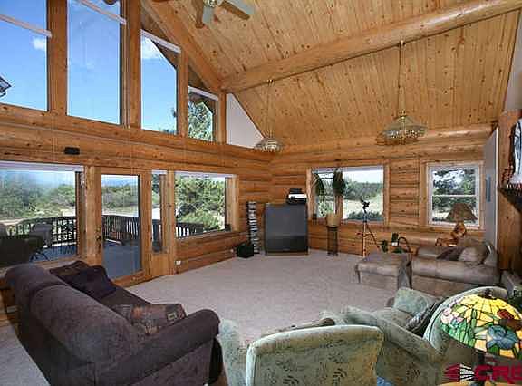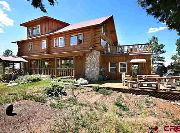 Located on a quiet country road just outside the town limits of Dolores, this Granath Mesa-top custom log home offers sweeping views of the La Platas, Mesa Verde National Park & the Sleeping Ute. A thoughtfully designed spacious interior provides 8 bedrooms & 4 baths perfect for either intimate family or large event gatherings. Large kitchen has flagstone floor, granite countertops & custom Aspen cabinetry made by an area craftsman. Stunning great room on main level features vaulted ceilings, picture windows facing the mountains & a spacious deck/balcony overlooking the property. Upper level master bedroom with adjoining bath & private study/library. Finished basement level includes living room, additional guest bedrooms, bath, and a great space ideal as a home theatre or exercise room.