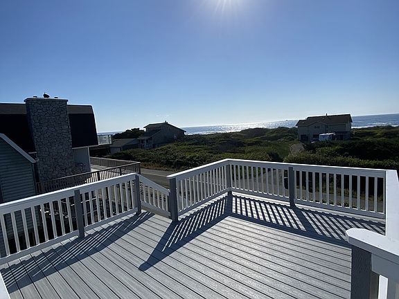 BEACH HOUSE & move in ready w/ocean views from almost every room, wrap around decks & across the street from miles of sandy BEACHES! Entire exterior is 2 years new: Roof, siding, facia, windows, doors, garage door, Trex decking & railings, custom rock work/mailbox, lighting and paint. Pellet stove, Carrera Marble countertops, backsplash, sink, faucet, dishwasher, and never used new SS refrigerator. Bathrooms have been updated too with tons of parking & room for a 50' RV!