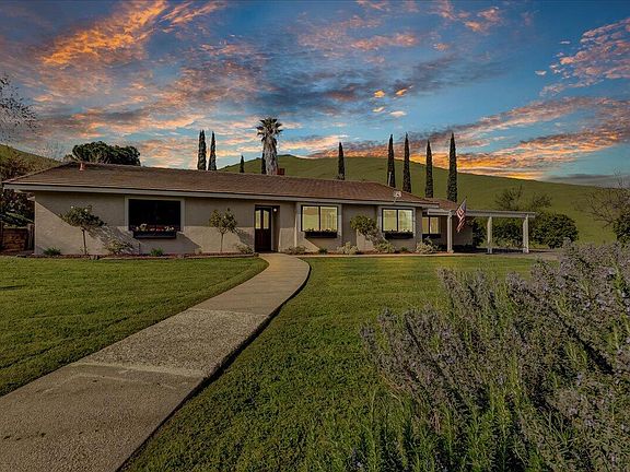 Harmony Hill Ranch - a secluded hilltop panorama of western foothill beauty offering a private, gated and fenced hilltop horse ranch in Mehrten Valley, CA located on 3.41 acres. The long private paved driveway climbs from the road below to a stunning hilltop estate home which boasts 1,920 sq. ft. of living space, 4 bedrooms, 2 baths, and 2 car garage. The master bedroom looks out to the beautiful hillsides and pool. Open floor plan with plenty of windows and an updated kitchen. The grounds feature a riding arena, stalls, barn with tack rooms and a horse washing station, covered parking for trailers or equipment, Pole Barn for hay storage, firepit, gardening boxes, and a chicken coop. This unique country property offers unmatched views.