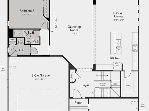- Description: Open To Gathering Room & Casual Dining Area, Kitchen Island, Built-In Stainless-Steel Appliance