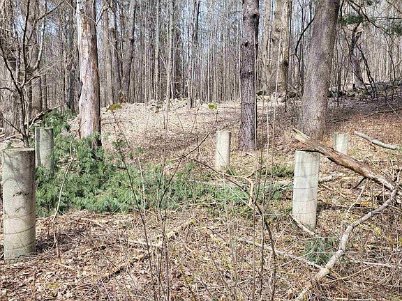 Braintree Hill – A 10 acre wooded lot that tips down to the south. With a roughed in driveway and electric power on the property, this land would make a beautiful building site. Concrete pillars that once held an A-frame are waiting for a new structure or deck to enjoy the woods. At the top of the property is a spring house for water. Buyers could clear trees to reveal spectacular southwesterly views of the White River Valley and uninterrupted the views of the Green Mountains.