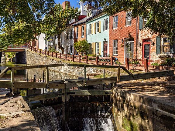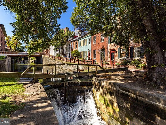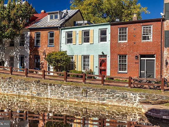 This absolutely charming house faces the historic C&O Canal mid block between Thomas Jefferson and 31st Streets and offers a unique opportunity for the next owner to create something extraordinary in the heart of historic GEORGETOWN. It is the BLUE painted brick house in the photos. The property has been used for many years as an artist's studio and offers a completely open 1st level. The 2nd level opens to the deep rear garden and has one bedroom and one full bath along with a large open room facing the canal. SEE FLOOR PLANS. The house is south-facing and is light and bright. THERE IS NO KITCHEN IN THE HOUSE.