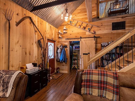 This breathtaking barndominium was built with love and is just awaiting its new owner. This 2 bed, 1 bath home feature custom poplar and hand crafted finishes throughout. The open floor plan allows for the second bedroom upstairs or an open loft. Nestled on 2.5 acres towards the end of a private lane this one gets you out of the hustle and bustle but is still close to anything that you need. 10 foot wide covered deck the length of the house makes for a great entertaining area. 1940's oven/range, wood burning stove, laundry chute, 80 gallon water heater, walk in pantry, and more shelving than you can imagine round out the perks of this one. 200 amp service to the house and 200 amp service in the barn.