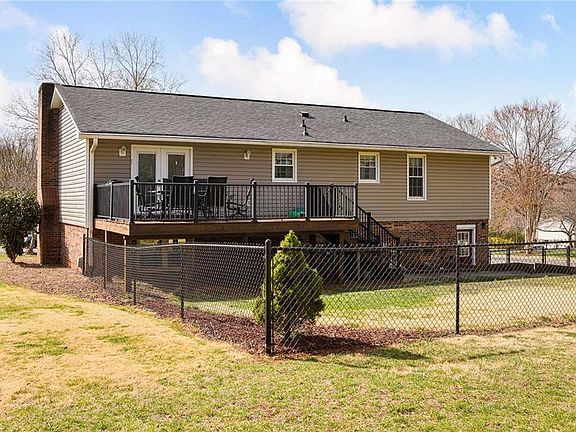 Nestled in a quiet cul-de-sac of an established neighborhood, this lovingly maintained home in Clemmons sits on nearly a half-acre, is centrally located and minutes from nearby shopping, dining, and a short drive to Winston-Salem for commuting. No thru traffic through the neighborhood. Move-in ready with fresh paint on the main level, highlighting a stylish blend of hardwood flooring and luxury vinyl plank, complemented by elegant chair railing. The oversized primary suite features an updated bath with custom-tiled walk-in seated shower, rain shower head/handheld combo and an elongated toilet. Two additional bedrooms on the main level. The deck has aluminum rails, is accessible from the kitchens French doors and overlooks the fenced and manicured backyard. Lower level includes a half bathroom and a large family room, could be a media room, office, or other flex space. 2-car garage with workshop area. NO HOA FEEs! New roof 2024. Refrigerator & outdoor storage building remains.