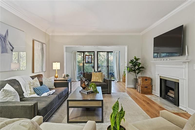 Beautiful Buckhead/Lenox condominium located in The Vanderbilt, a concierge GATED COMMUNITY with Saltwater Pool, fitness center, clubhouse, and dog walk. LARGEST FLOORPLAN in the complex with an Open and flowing floorplan. This spacious 3 BR / 2.5 BA condo has an open concept and features a Huge Family room with gas fireplace that opens to the Dining Room. The kitchen has been updated with loads of cabinetry, newer stainless-steel appliances, and granite counters. A large sunroom and private balcony spans along the back of the condo and allows for plenty of natural light. The Oversized Primary Suite features a recently updated bathroom with whirlpool tub, marble floors, a huge walk-in shower with Carrara marble tile and a custom, dual vanity. There is a separate Den with gas fireplace that features built in's and is a perfect space for a 3rd bedroom or Home Office. There is an additional Guest Room with a large walk-in closet. The laundry Room features a newer washer & dryer and additional storage cabinetry. Beautiful Hardwood floors thru out the unit, neutral paint and crown moldings. This unit comes with TWO deeded, Covered PARKING SPACES and is located at the front of the community where there is plenty of Guest Parking. Prime location with EZ access to 85, GA400, Marta, Lenox Mall, Phipps Plaza and other great shopping and restaurants. RENTAL PERMIT AVAILABLE