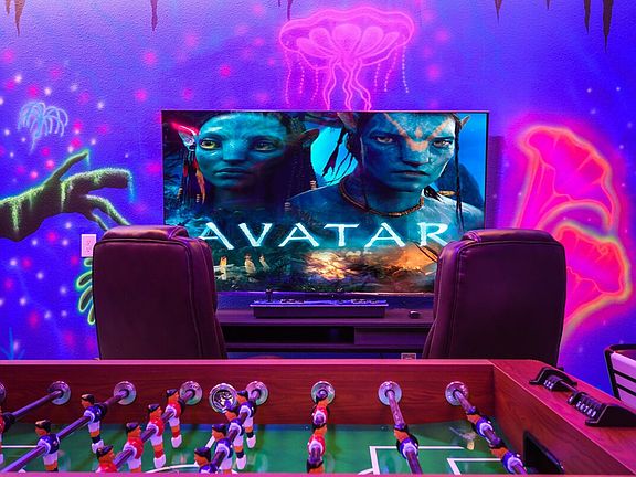 Step into this stylish 10-bedroom, 8-bathroom retreat at Windsor Island Resort in Kissimmee, Florida, a dream come true for Disney enthusiasts. Immerse yourself in the magic with themed rooms, opulent bathrooms, and state-of-the-art bedrooms. Enjoy a private pool and spa, and you're just 10 miles from Disney World. The resort offers a water park, resort pools, fitness center, sport court, and bar and grill. Prepare gourmet meals in the state-of-the-art kitchen, unwind in the tastefully furnished living spaces, and stay connected with lightning-fast Wi-Fi. Relax and enjoy your favorite shows on the smart TVs, gather around the breakfast bar for a quick bite, and savor unforgettable meals in the elegant dining room. With plush sofas and impeccable design, every corner exudes comfort and sophistication. Immerse yourself in luxury and create lasting memories in this exceptional retreat. Whether you're looking to take a refreshing dip in the pool or unwind with a tropical drink by the water, this is the perfect oasis for your vacation. Embrace the Florida sunshine, savor delicious meals al fresco, and create unforgettable memories with family and friends. Your ultimate relaxation awaits. The property offers a private pool for refreshing dips and a patio dining area for al fresco meals. The game room is equipped with arcade machines, Roll and Score, foosball, and an air hockey table. A crib is available, but please bring your own crib sheet. Located just 10 miles from Disney World, this retreat offers easy access to the magic of Disney. The Windsor Island Resort provides a water park, resort pools, fitness center, sport court, and bar and grill, ensuring entertainment and convenience right at your doorstep. The property includes themed rooms and opulent bathrooms, enhancing your stay with a touch of magic. A crib is available, but please bring your own crib sheet. The property is non-smoking and no parties are allowed. Stay connected with lightning-fast Wi-Fi, ensuring seamless connectivity for all your needs.