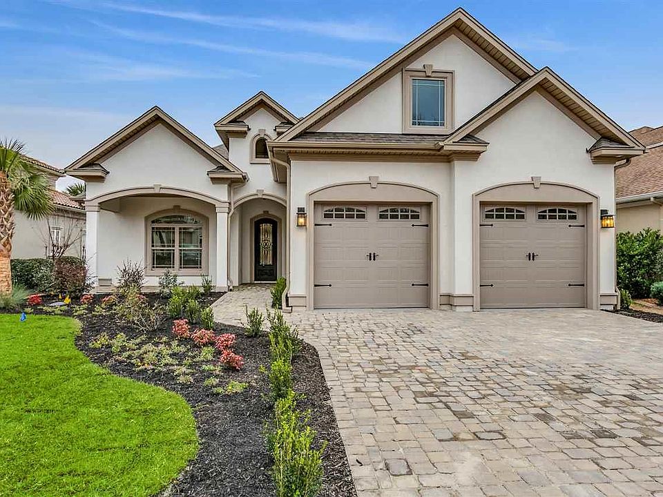 Another custom home by the #1 Builder in The Bluffs. Single level Mediterranean style home on a large lot. Open floorplan, Master Bedroom with trey ceiling, large walk-in closets with custom shelving, Master Bathroom offers his and her sinks and large walk-in shower. 3 Guest Bedrooms, 3 additional full bathrooms, kitchen with island, dining area overlooking the water, great room with coffered ceiling and fireplace, office/study that could be a formal dining room, Bonus Room is the 4th bedroom. Crown molding throughout the main living areas and master. Tile floors in all areas including the bedrooms and bathrooms. Covered lanai with built in barbecue grill, fridge and sink. The Bluffs on the Waterway is the premier gated community in Carolina Forest located on the Intercoastal Waterway and offers a main clubhouse with pool, tennis courts and kids play area, a second clubhouse located on the waterway, boat storage for a small annual fee, and a boat ramp.