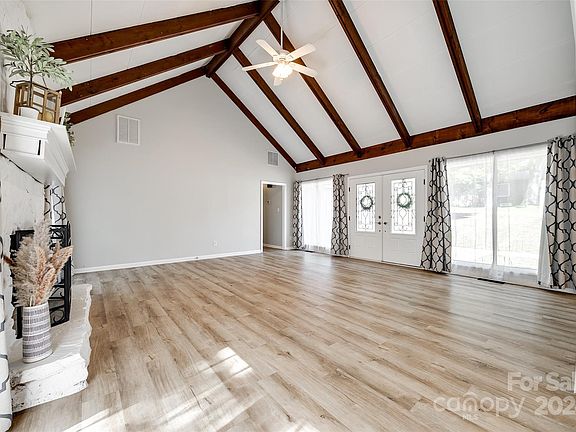 Step into this ranch style home nestled in the vibrant community of Tega Cay, SC. While the interior showcases an open-concept layout that seamlessly connects the living, dining & kitchen areas, the outside is a sprawling fully fenced in backyard perfect for hosting gatherings or perhaps the perfect spot for stargazing on clear nights. So many memories are waiting to be made in the spacious great rm w/vaulted ceilings, beautiful beams & a wood burning fireplace that adds to the rustic charm! Upgraded kitchen w/stainless appls, black granite counters & custom island. The layout ensures ample storage & workspace, making meal preparation a delight. Retreat to the primary bedroom with a versatile space that can be a home office, sitting, craft room or gym. Whether you're a 1st time home-buyer or looking to downsize your space to 'right-size' your life, this home offers great value in a friendly community. It combines the tranquility of suburban living w/ easy access to local amenities!
