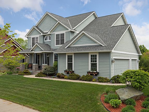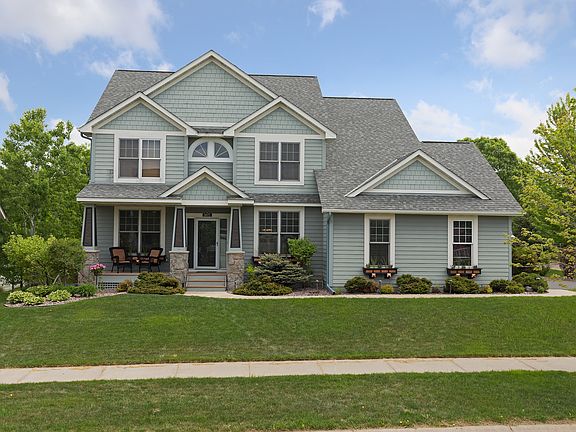 Custom-built by Norcutt Homes in the highly desired neighborhood of Stonemill Farms, this warm and inviting home is perfect for entertaining and raising a growing family. A side-loading garage contributes to the cottage curb appeal with its cozy front porch adorned with stone accented pillars, along with mature landscaping and copper flower boxes underneath each window that will look darling when planted in the warmer months. Enter the home to a nice-sized foyer with cherry hardwood flooring that leads to an open floor plan straight ahead. A set of sliding glass pocket doors to your left open to a conveniently-placed and private office, and to your right is a formal dining room with direct access to the kitchen and open floor plan. This area is spacious and bright, perfect for preparing meals while watching television or keeping an eye on the rest of the household. The great room here features a floor-to-ceiling stone surround gas fireplace flanked by a built-in entertainment center and display cabinets that match the custom maple cabinets in the kitchen. These beautiful pieces add a clean and distinguished look to the kitchen, as do the granite countertops and stainless steel appliances, while an informal dining room and large center island provide ample seating space. In addition, a walk-in pantry and half bath are conveniences sure to be appreciated, as well as a mudroom and laundry room around the corner. On the upper level are your preferred four bedrooms, including the roomy Owner’s suite featuring a coved ceiling, large windows for lots of natural daylight and a generous-sized walk-in closet. Its private bath offers double vanities, a soaking tub, tile surround shower and an abundance of maple cabinetry, while an additional full bath services the remaining three bedrooms. And if you’re looking for more space to entertain, the lower level has been finished just for that! An impressive wet bar sits at the bottom of the staircase, designed with custom Alder wood cabinets and built-in wine racks, granite counters, stainless steel appliances and in-floor heat. Likewise, a wall of custom Alder wood built-ins surrounding a gas fireplace makes a grand statement in the family room, where you can enjoy movie night with family and friends or in the media room as well! An additional recreation area provides walkout access to a stamped concrete patio in the private backyard, and a fifth bedroom and ¾ bath are perfect for accommodating guests. Adored and well-cared-for from the day it was built, you can now have the pleasure of calling this divine home your own.