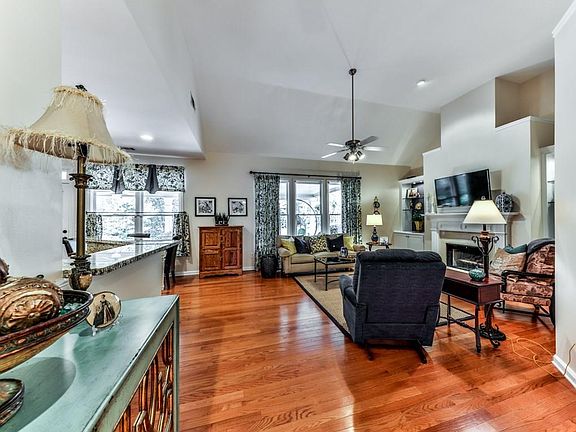 Amazing open floor plan, custom-lit built-ins, neutral colors throughout, hardwoods in foyer, dining room, hall, kitchen & family room, updated spacious kitchen with granite, stainless steel appliances, breakfast room, large master bedroom, updated master bath with double vanity, separate shower/garden tub, large walk-in closet, open formal dining room, wide hallways, covered patio (length of home) that will become your favorite spot in the house, lighted koi pond, flower gardens, vegetables & more. Top of the line HVAC system with phone access to set temperature & roof that are only 1 year old. This is a beautiful home and well maintained.