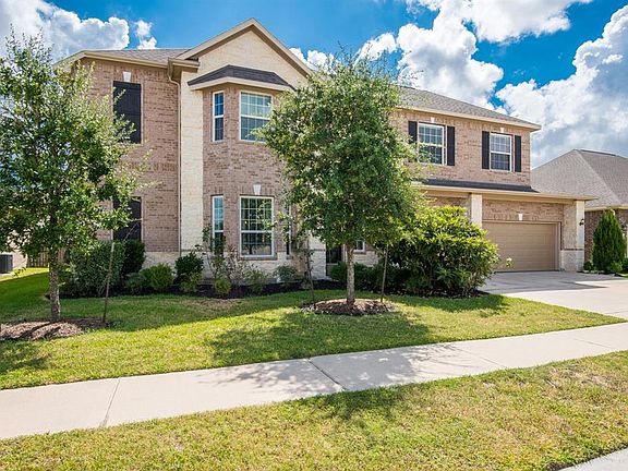 Five bedrooms in Legends Trace of Spring! Brick and stone exterior, soaring ceilings and lovely architecture make this home special! The downstairs includes a guest suite with bath, a private study behind French doors, and an extra room! Upgraded lighting and gas log fireplace add warmth to the living area, and stainless appliances sparkle under recessed and undermount lighting in the gourmet island kitchen with separate dining area and gas cooking! Access to the covered backyard patio, tray ceiling and well-appointed private bath create comfort in the elegant Owners retreat with large walk-in closets! Located upstairs, with the secondary bedrooms/baths the game room/media room are prewired with projector and screen! Fully fenced backyard with covered patio. Book your tour today!