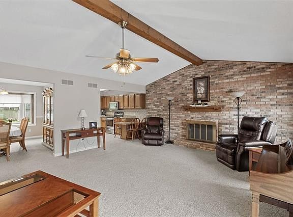 Welcome Home! This well maintained 3 bed, 3 full bath ranch home, is sure to impress. Upon arrival you will be greeted with beautiful curb appeal including, manicured flowers, bushes, & trees. Entering the home you will have sight lines to the dining room, living room, & the kitchen. Kitchen features all SS appliances, bay window, breakfast peninsula & pantry. Separate dining room conveniently located off the kitchen. The massive living room, has a WB fireplace, vaulted ceilings, newer paint, & gives you access to the low maintenance deck on the back of the home. All 3 bedrooms are on the right side of the home. The Master Suite, has double doors, vaulted ceilings, a walk-in closet, extended vanity, separate tub/shower, & a heated floor with it's own thermostat. The basement is finished, with a large rec area, WB fireplace, full bathroom, & a sliding glass door to access the covered patio. The 2 car garage is located under the home & has a work bench area, perfect for all your tools.