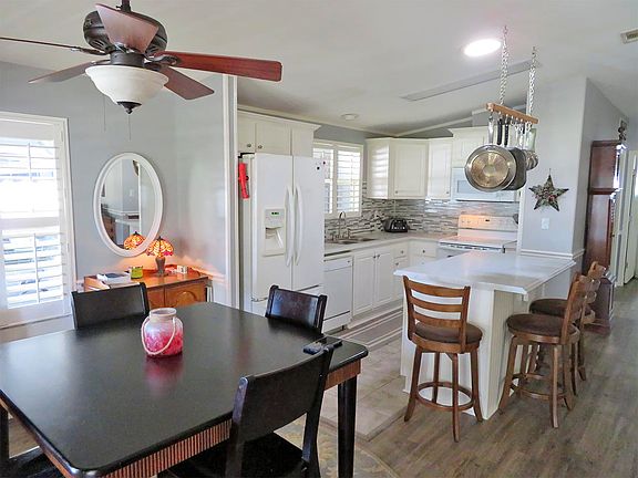 BY APPOINTMENT ONLY. This adorable home has so many benefits and updates...TWO large Bedrooms, TWO Baths, all hard floors throughout the home, cathedral ceilings, plantation shutters, updated counter tops and back splash. Fresh paint, FURNISHED, fans in every room. Extra large Florida Room has a great view of the neighborhood, but still private when you need it. Two-car garage, awnings and add-a-curbing gives this home on a corner lot great curb appeal. Did we mention the 2020 HVAC and 2019 Roof? Don't procrastinate, call today!