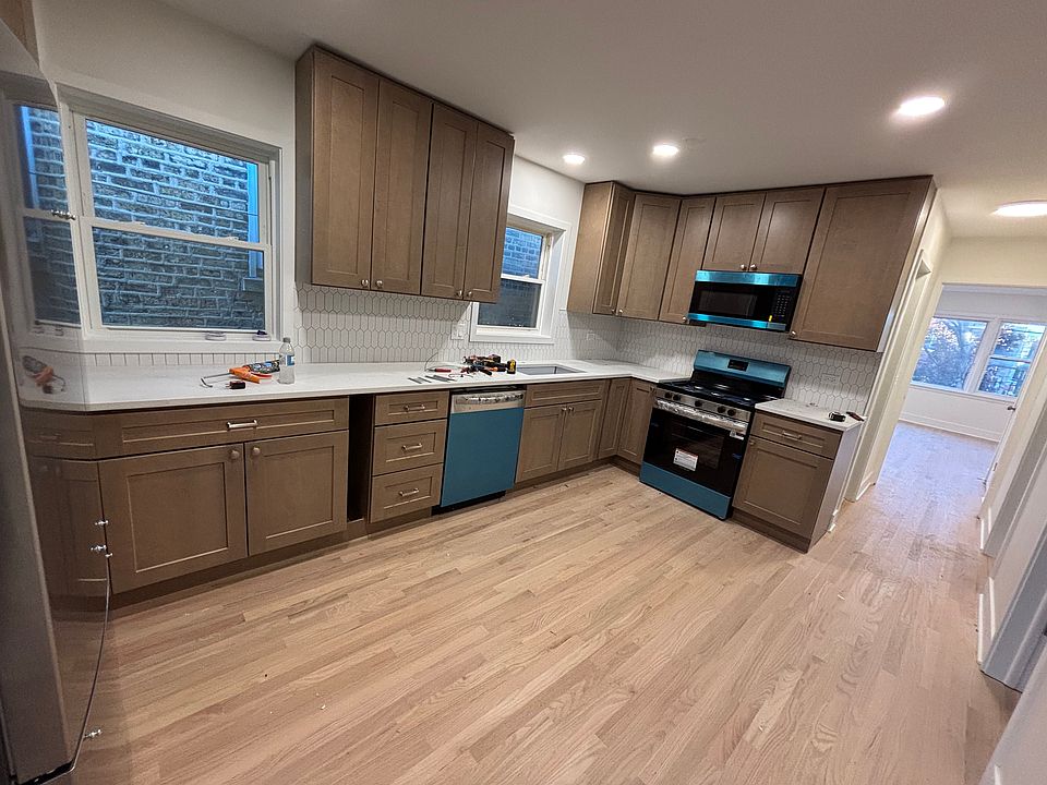 Bright and beautiful, fully gut renovated top-floor, 2 bedroom apartment ready for its first occupant. Great Avondale location on quiet tree lined street, but just a block off all the shops/restaurants of Milwaukee Ave. Central heat and AC. Freshly finished natural oak hardwood floors. Brand new kitchen with real wood cabinets, soft-close doors and drawers, quartz countertops and stainless steel appliances. Large bedrooms comfortably fit queen beds. Light and stylish new bathroom.