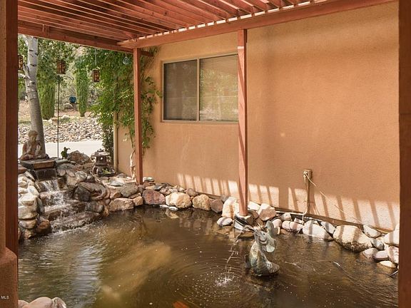 Situated on over an acre of boulders in a lush park-like setting including a seasonal creek and backing to Pioneer Park, this beautiful main level living 3520 square foot home is located in the desirable community of Southview. Offering three bedrooms, two baths, a three car garage and a level entry, dramatic long distance views capture the San Francisco Peaks and Granite Dells. Spacious decks, patios and pathways invite unique outdoor living. There is a Santa Barbara feel to the open floor plan where great room, dining and kitchen spill into one another inviting a casual style to everyday living or comfortable entertaining. The lower level is access by a spiral staircase and takes you to a large open space for hobbies, office, den or guest space and includes a full bath.
