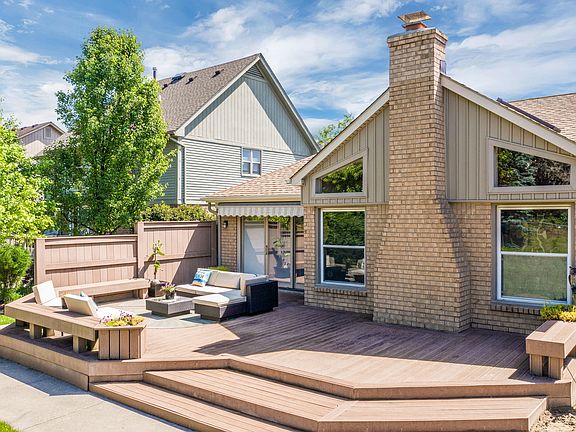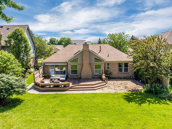 Welcome home to this luxuriously designed 3 bed 3.5 bath ranch in Wildflower. Inside, this well-loved home offers an open-concept floor plan, perfect for entertaining! Featured upgrades include Brazilian cherry wood floors, state of the art kitchen with stainless steel island and Juparana Persia granite counters, GE Profile appliances with built-in microwave, and European custom built cabinets with soft-touch closures. Updates include newer roof, windows, blinds, and siding. Finished lower level with full bath is the perfect backdrop for parties and special events. Large private backyard features electric push-button retractableawning that covers the composite deck. Rochester schools, close to everything, this is a must-see!
