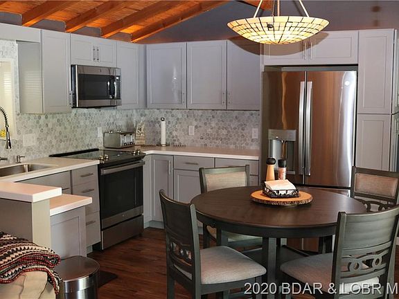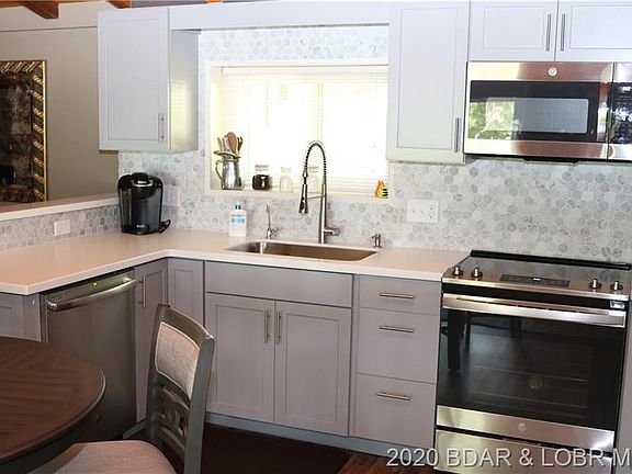 LOCATION LOCATION LOCATION! You will love this updated neat and clean lakefront home situated off the much desired O road location, located in an amazing cove with a beautiful main channel view. Owners have tastefully updated this home with a gorgeous brand new kitchen with state of the art appliances, updated bathrooms, luxury vinyl faux wood flooring, dual pain windows and doors, and much more. House sleeps 6 very comfortably. Quiet private subdivision located at the 1.5mm of the gravois arm making this very convenient to all the lakes nightlife. Lots of entertaining lakeside with huge fire pit and nice martini deck to enjoy the views. Subdivision has been featured in local publications for its rich and interesting historical heritage dating back to the 1940's when the lake was undeveloped. Beautifully landscaped with mature trees and lots of natural rock. Awesome almost new Rough Water dock with a 14X40 slip, 10X34 slip, updated stereo system, and massive storage shed.