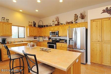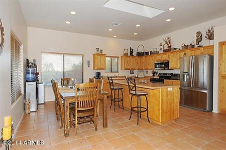 Adorable, clean and comfortable floorplan best describes this open feeling with great views of the mountains. Great kitchen with newer appliances, b/i desk, eat in kitchen.Skylights allow lots of natural light to flow thru the home. Lighted niches for artwork, tile throughout, nice size laundry room, walk in closets in all bedrooms. Garage has cabinets and storage racks. 2.5 acres gives you the space and privacy you'll enjoy. Outdoor enthusiast will love riding, biking, or horseback riding a short distance to the Tonto Nat. Forest for unlimited riding. Less than 1 mile to paved road. Property includes 3 stall Shedrow shed w/large turnout, storage shed for tack/feed,block fence for a dog run, garden, security system w/ 8 cameras. Firepit in backyard. Roof redone. Exterior shutters.
