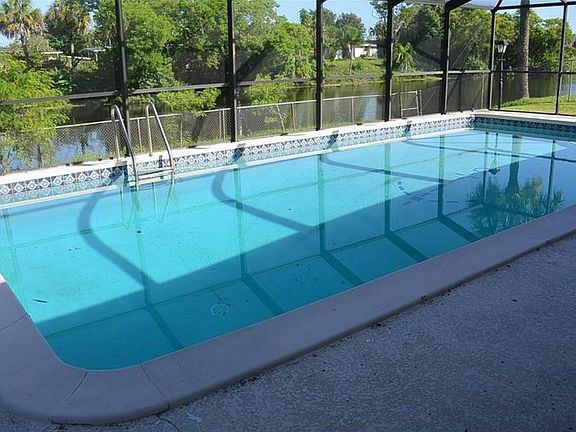 Waterfront 3 bedroom, 2 bath car with 2 car garage and pool. Freshly painted interior and exterior. Large living room and family room with wood burning fireplace and sliders out to the pool. Kitchen features new stainless sink, overlooks family room. The Master has access out to the screened in patio and pool. Spacious garage with lots of storage. New AC compressor installed. Fenced back yard, large screened lanai and in ground pool.