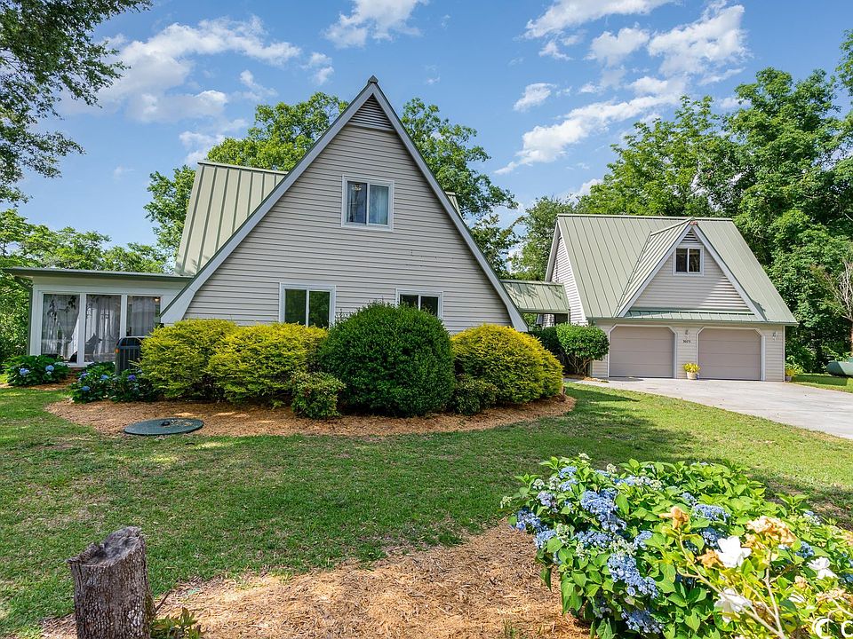 Unique riverfront home with direct access to the Waccamaw that offers tranquility and peace of mind. Immerse yourself in blissful moments by the fireplace, surrounded by top-to-bottom windows that showcase the stunning A-frame design and riverfront views. Enjoy your morning coffee in the inviting Carolina Room or on one of the many expansive decks with mesmerizing river views. This 0.58 Acre property offers plenty of privacy. End your day by docking your boat at the private floating dock, then entertain loved ones in the beautifully finished game room above the garage or on the lower level fire pit with built-in grill grates and seating area.  The kitchen features stainless steel appliances and plenty of counter and cabinet space. The primary suite and three additional bedrooms provide plenty of space and comfort for everyone. Upgrades include NEW windows, upgraded bathrooms, NEW flooring in all bedrooms, new lower deck and fire pit area and more.  In addition, there is a walk-in basement under the living room which gives access to the crawl space and water heater, hvac, etc. that can be used as a workshop and extra storage. There is also a versatile hidden room that is roughly 5'x10' with vaulted ceilings allowing for easy walk in access.  Situated on a half-acre lot, the property embraces nature's beauty with grand trees and meticulous landscaping. Breathtaking river views provide a captivating backdrop to your daily life. Enjoy easy access to downtown Conway, Carolina Forest, and major highways like Hwy 22, Hwy 31, and Hwy 501. Sandy beaches are just 15 minutes away. Don't wait—explore this remarkable riverfront retreat today!