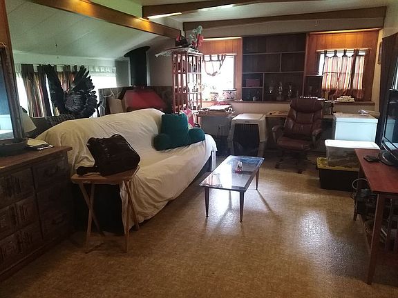 Solid older trailer, fenced yard, extra protective snow roof over the trailer, closed in porch on every exit. Fireplace, gas furnace close to schools,shopping, hospital.