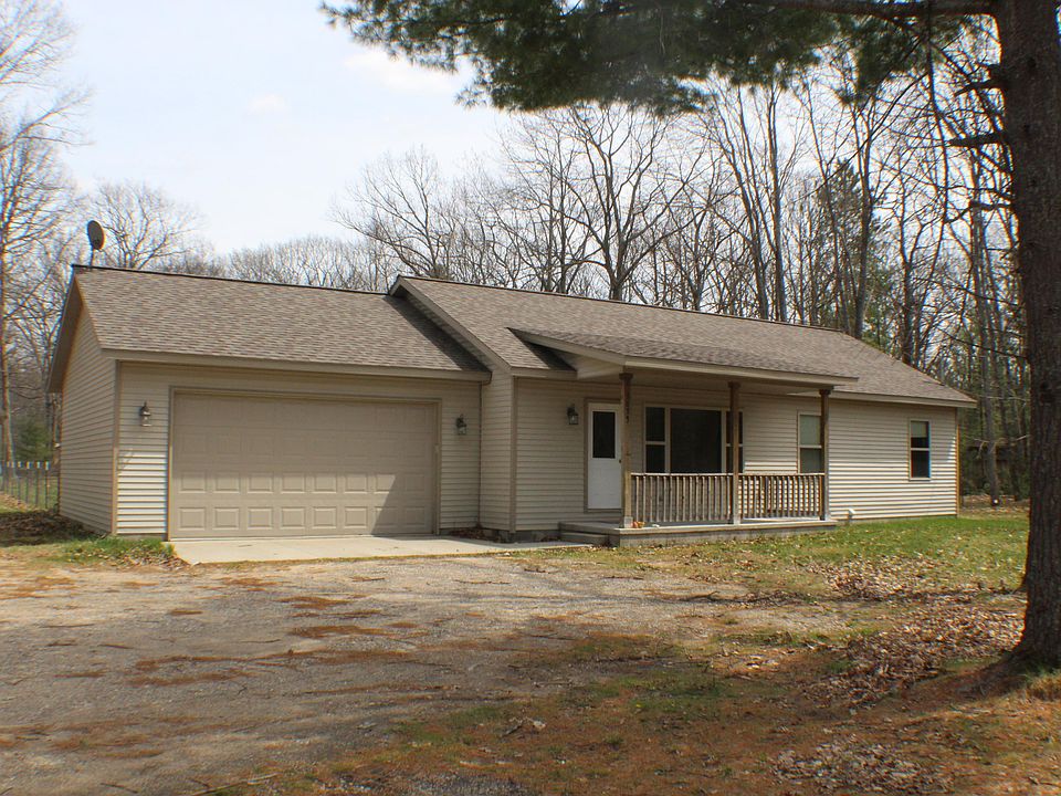 Newer 3 BR, 2 Full Bath vinyl sided ranch on nicely wooded 2 Acres. There is knotty pine tongue & groove interior with vaulted ceiling, master suite, and nice fenced yard. There is access to West Twin Lk at the end of road. Enjoy the 10x22 back deck. Appliances are negotiable.