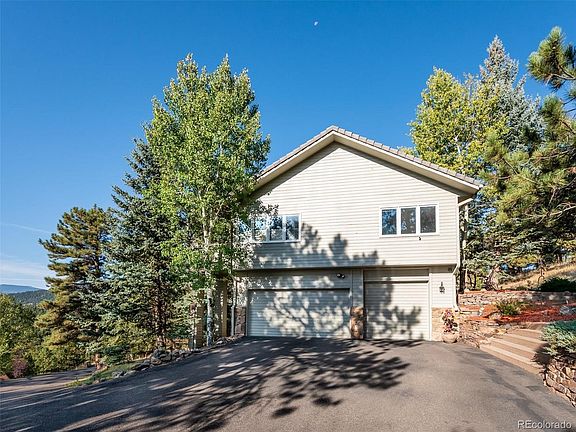 Rarely does a home show better than the photos, but this is a property that the photos could not capture the expansive views or essence of this home, this is a must see "in person" property! The thoughtful design captures our beloved mountain views while backing to open space, making this a special location within this neighborhood. As you enter this property you will be captivated by scenes of Bergen Peak, Squaw Mountain and Three Sisters from the the wall of windows in the great room. Vaulted ceilings and gas fireplace compliment this area which flows effortlessly into the formal dining room. The kitchen has been updated to include granite counter tops with cook top island and opens to the cozy living area with fireplace. Also included is extra dining and easy access to the entertaining deck with privacy provided by the old growth pines and Aspens. Main floor master suite accommodates his and her closets, 5 pc bathroom, gas fireplace, and private balcony. Completing this main level is a guest bedroom, full bathroom, office and powder room. The lower-level walkout is complete with 2 more bedrooms, 3/4 bathroom with sauna, and open area for your recreation needs or mother-in-law living quarters. There is an exterior access to the covered patio while conveniently fenced for your pets. Three car oversized garage has room for extra storage and is equipped with a separate room that is heated and easily can be a workshop or art studio. Within walking distance to schools, grocery stores, restaurants, and hiking trails. Close to Hiwan golf course, rec center and 1-70 for world class skiing! Priced to allow room for your desired updates.