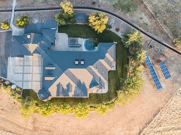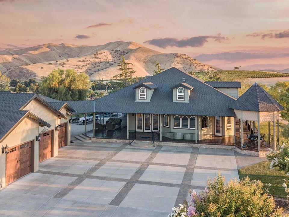 Elegant Estate overlooking Success Lake as well as a nearby private pond! This 3 BR, 3 BA 3470 SQ FT home on over 5 acres is simply incredible! Every little detail has been seen to in the construction of this gorgeous home. The kitchen is a chef's dream, with 6-burner stove, built-in black fridge, oven and warming drawer, 2 sinks, 2 garbage disposals and an enormous pantry! The bedrooms are all over-sized with gigantic closets! The master suite opens onto 2 different patios and the wrap around porch is on all 4 sides of the home! There is a fountain on the welcoming edge of the property, and a huge water feature in the backyard. There is owned 53 panel solar, a tremendous shop, an amazing outdoor kitchen and the garage can convert to a party venue, with stained cement, scored flooring, tons of counter work-space and a kitchen! Its all behind an electronic gated entry with an additional adjacent 10 acre parcel fronting highway 190 that can be purchased separately.